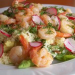 Sałatka z makaronu soba z krewetkami, awokado i szpinakiem
